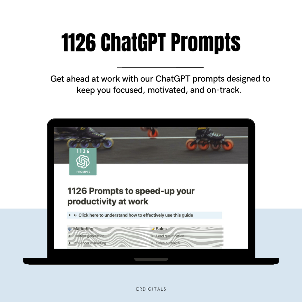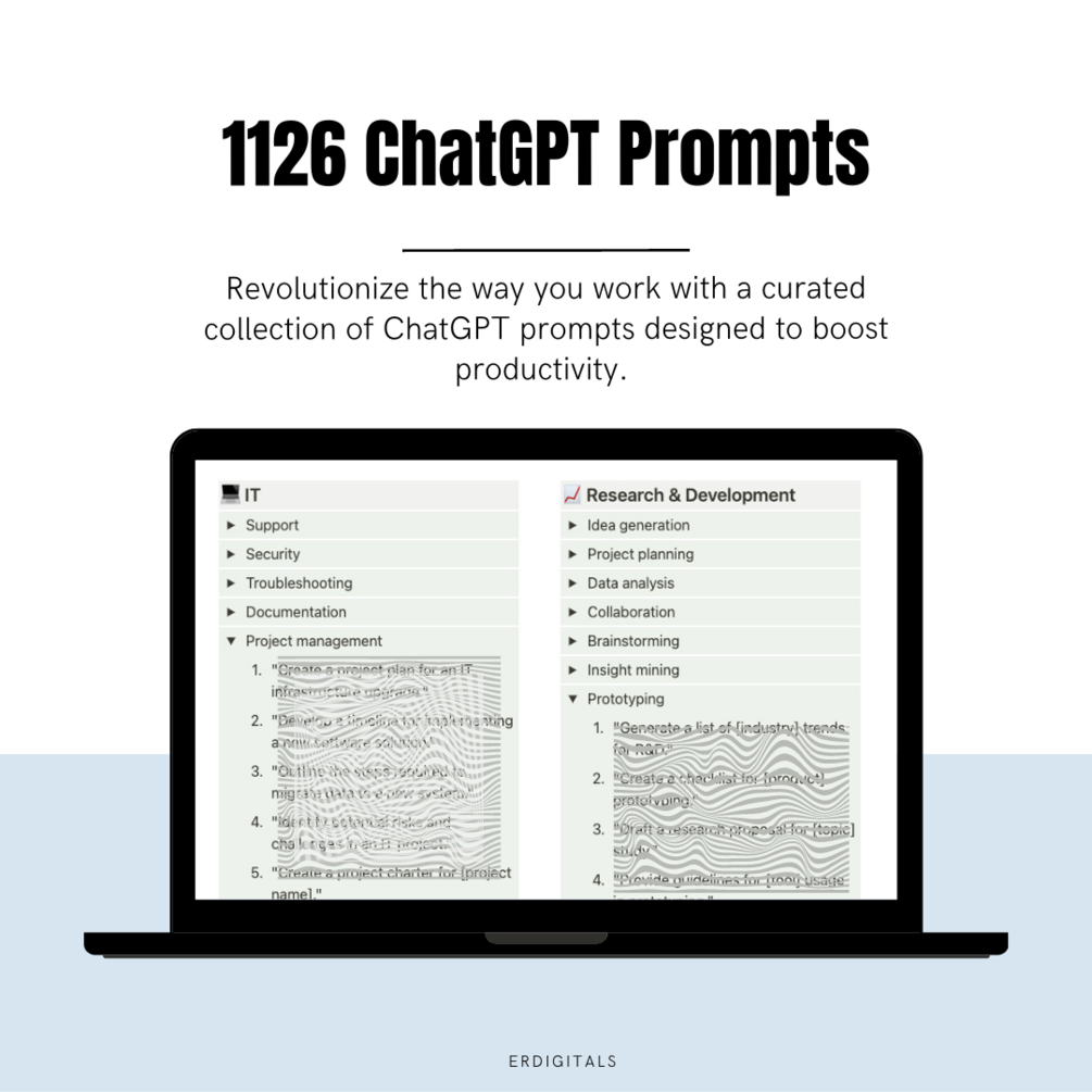 #BoostProductivity and streamline your workday with our collection of #ChatGPTprompts! With over a thousand expertly curated prompts, this resource is designed to help you stay focused, motivated, and on-track as you tackle your daily tasks. Perfect for #freelancers, #entrepreneurs, and anyone looking to optimize their workflow, this comprehensive guide is now available on #Gumroad. Download your copy today and start achieving your goals like never before!